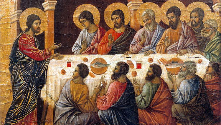 L’apparition aux disciples. Duccio di Buoninsegna. Détails de La Maestà, 1308-1311. Museo dell’Opera Metropolitana del Duomo (Sienne).