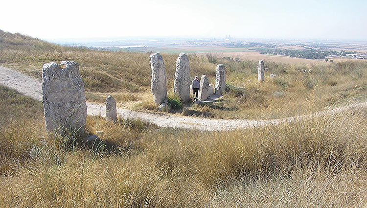 Érigées à la période de Moyen Bronze (vers 1800 avant notre ère), elles semblent avoir fait partie de la vie des habitants de la ville jusqu’à l’époque du Récent Bronze (vers 1300 avant notre ère). Elles forment un alignement vertical presque parfait dans l’axe Sud-Nord. Le complexe est formé de dix monolithes d’inégales grosseurs et hauteurs, les plus grands atteignant plus de 3 m. Il en manque possiblement quelques-uns car on distingue très nettement un vide entre le deuxième et le troisième monolithe en partant de la droite (Nord). Quant à celui qui repose sur le sol (difficile à distinguer dans les broussailles), il est possible que son emplacement originel se trouvait entre les deuxième et troisième monolithes.