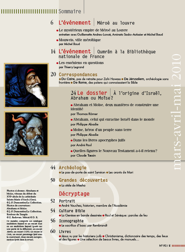 La France, en ce début du XXIe siècle, s’interroge sur son identité nationale : y a-t-il des conditions linguistiques, religieuses, culturelles pour être français Sur quoi repose l’appartenance au pays?… À la lueur de ce débat, le thème de notre dossier a pris une étonnante actualité. Nous voulions comprendre pourquoi, dans la Bible, Israël se revendiquait de figures fondatrices aussi différentes et lointaines qu’Abraham le Mésopotamien et Moïse l’Égyptien. Nous avons découvert… un débat sur l’identité nationale ! Celui-là avait eu lieu après l’Exil à Babylone, à partir de 539 av. J.-C., quand un conflit opposa les Judéens restés au pays et les élites de retour. Lesquels étaient vraiment « chez eux » sur la Terre d’Israël?