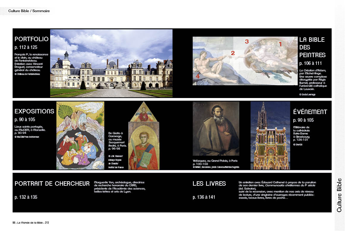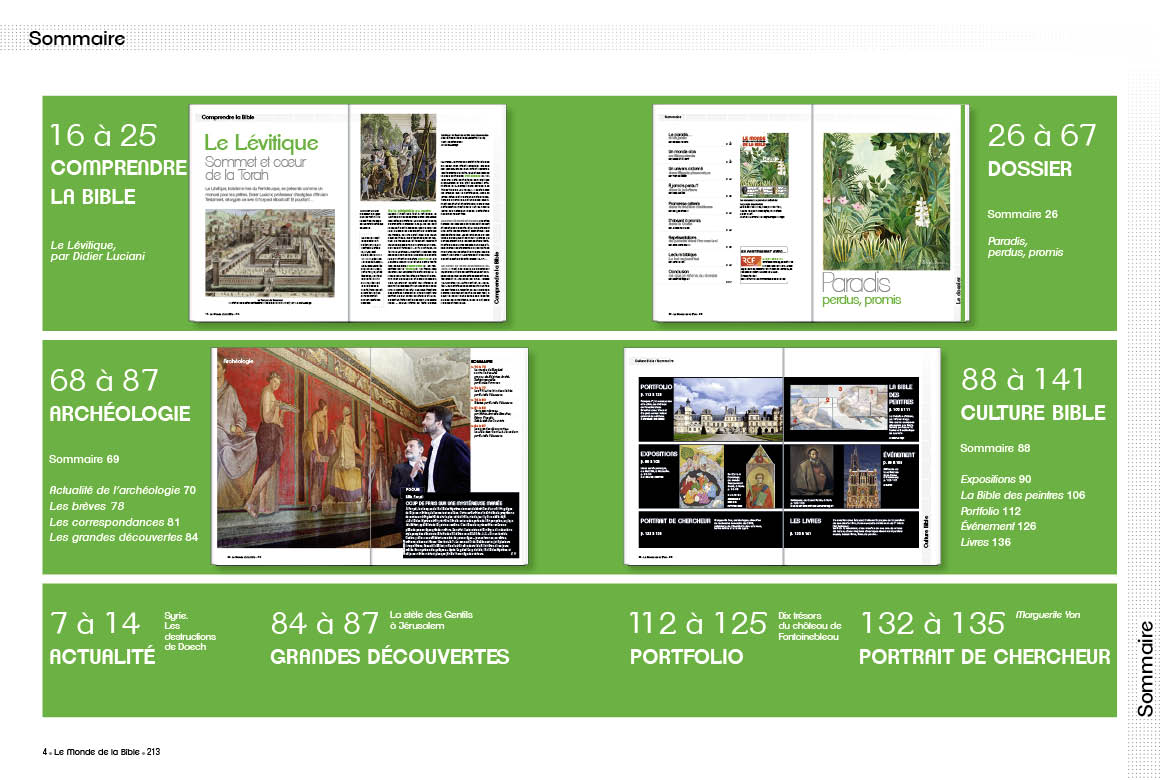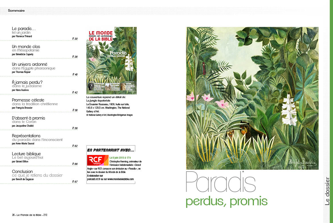 Paradis perdus, promisNUMÉRO 213 • juin-juillet-août 2015 À la recherche d’un paradis perdus ? L’Éternel planta un jardin en Éden, à l’orient, et Il y mit l’être humain qu’il avait formé, lit-on dans la livre de la Genèse (2,8). Ce paradis, plein de délices et dénué de toute violence – les mammifères y sont végétariens – fut ensuite perdu par l’orgueil des hommes. Depuis cette perte, l’humanité serait inlassablement à sa recherche. Entre la perte définitive d’un paradis originel et la quête d’un nouveau paradis après la mort, nous avons désiré comprendre ce qui était en jeu, comment se sont formés ces mythes et ces promesses. Nous avons souhaité également les comparer dans les traditions des religions antiques et dans la formation les monothéismes, judaïsme, christianisme et islam. Pour cela, nous avons d’abord demandé à Florence Thinard, auteur du livre-herbier Dans les jardins de la Bible de nous décrire la botanique des jardins bibliques : quelles espèces y découvre-t-on ? À quelle symbolique obéissent-elles ? Bénédicte Cuperly (Paris I, Panthéon-Sorbonne), nous initie ensuite à l’origine du mot « paradis », transmise par les voyageurs antiques qui découvraient en Mésopotamie de fabuleux jardins royaux. Thomas Reyser, historien, révèle la vision besogneuse mais heureuse que se faisaient de la vie dans l’au-delà les Égyptiens sous Pharaon. Dans la formation du judaïsme, Hans Ausloos (Université catholique de Louvain), discerne les différentes évocations du paradis perdu dans la Bible hébraïque et les variantes repérées dans les traductions grecque de la Septante et latine de la Vulgate, avant de s’interroger sur la naissance d’une promesse paradisiaque dans la littérature juive. François Brossier, exégète, explorant la Bible (Ancien et Nouveau Testament), produit un exercice similaire. Si le thème chrétien du paradis perdu reprend en grande partie l’héritage juif, la promesse chrétienne d’un paradis céleste est-elle originale ? Comment celui-ci est-il représenté ? Nous avons également demandé à l’historienne arabisante, Jacqueline Chabbi, de restituer ce que dit le Coran d’un paradis perdu et d’un paradis promis. En quoi se distinguent-ils des thèmes et images bibliques ? Et – actualité oblige ! – de nous préciser ce que le Coran dit de la promesse faite au musulman mort au combat ? Enfin, dans nos sociétés sécularisées, l’image du paradis habite-elle encore nos imaginaires et nos consciences ? Si oui, comment ? La réponse est confiée à la psychanalyste Anne-Marie Saunal qui, depuis 20 ans, se trouve régulièrement confrontée à des images, parfois terribles, émises par ses patients. Dans ce numéro 213 vous trouverez également des réponses aux questions que pose le conflit en Syrie et en Irak ; les clés de lecture pour comprendre le Lévitique ; des découvertes archéologiques en Israël, l’ouverture du musée de Bagdad et l’histoire de la célèbre stèle des Gentils à Jérusalem ; un portrait de Marguerite Yon, archéologue ; l’actualité des expositions qui évoquent Velázquez, Giotto et le Caravage à Paris, les lieux saints partagés à Marseille et le millénaire de la cathédrale de Strasbourg ; la Bible des peintres qui passe au scanner la création d’Adam de la chapelle Sixtine à Rome par Michel-Ange ; un portfolio révélant dix chefs-d’œuvre de la Renaissance au château de Fontainebleau ; sans oublier les recensions de nombreux livres… |