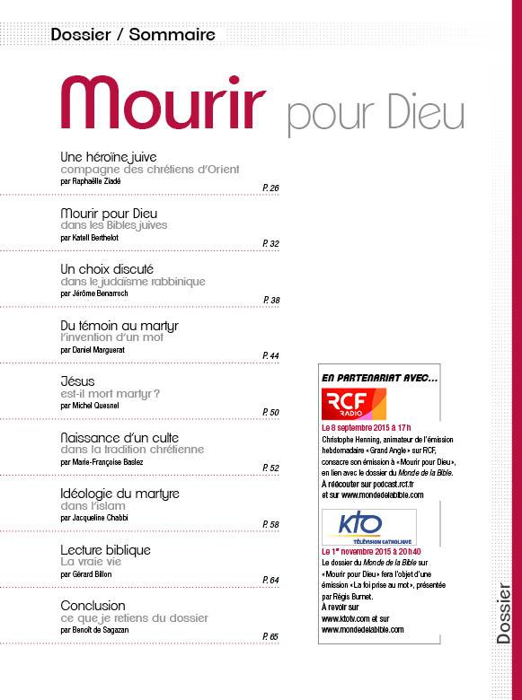 un dossier Mourir pour Dieu, sur la question du martyre dans les trois religions monothéistes (christianisme, islam et judaïsme);