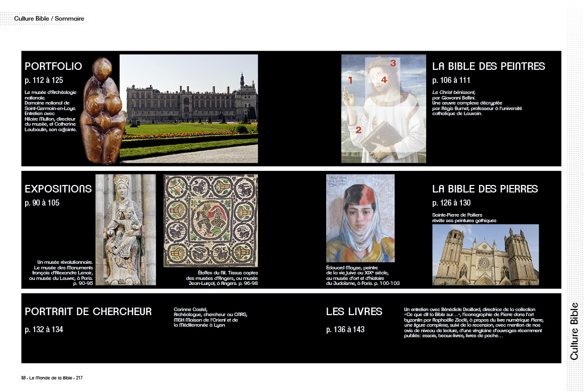 la Bible des peintres qui passe au scanner Le Christ bénissant par Giovanni Bellini et, notre nouvelle rubrique, La Bible des pierres qui révèle les peintures gothiques de la cathédrale Saint-Pierre de Poitiers ;