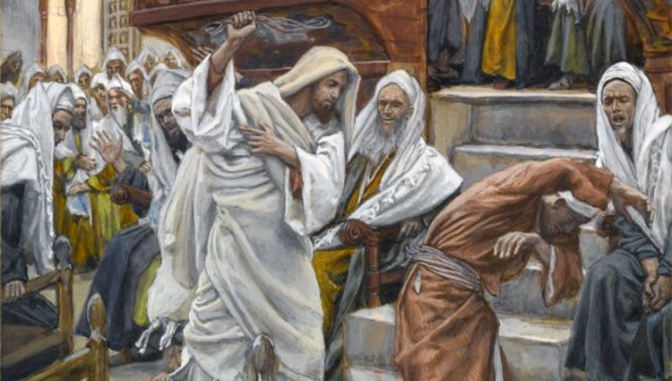 Jésus chasse un possédé de la synagogue (détails). James Tissot, entre 1886 and 1894. Aquarelle et mine de plomb sur papier vélin, 23 x 18 cm. Brooklyn Museum, New York (photo : Wikipedia)