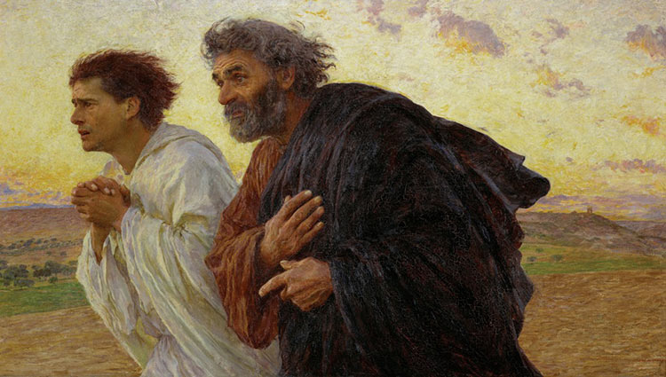 Dans le passage d’évangile que nous lisons à Pâques, notons qu'à l'intérieur des huit premiers versets, on trouve sept mentions du tombeau, comme pour nous faire saisir qu'en ce lieu, quelque chose d'important va se passer, à quoi nous devrions prêter attention. Cette première impression est avivée par le fait que les trois personnages impliqués dans la scène, Marie de Magdala, Simon-Pierre et l'autre disciple, semblent vraiment attirés par ce tombeau puisque chacun y court allègrement (Jn 20,2-4).