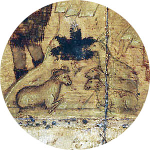 Les moutons sont le symbole de l’innocence et surtout de la rédemption. « Voici l’agneau de Dieu. » (Jn 1,29). Ils incarnent la douceur. L’agneau, comme le veau, est utilisé comme obole, sacrifié à Dieu. « L’agneau premier-né […] incarne le triomphe du renouveau, la victoire, toujours à refaire de la vie sur la mort. C’est cette même fonction archétypale qui fait de lui par excellence la victime propitiatoire, celui qu’il faut sacrifier pour assurer son propre salut [7]. » Ceci décrit bien tout le symbolisme qu’ils incarnent dans notre icône.