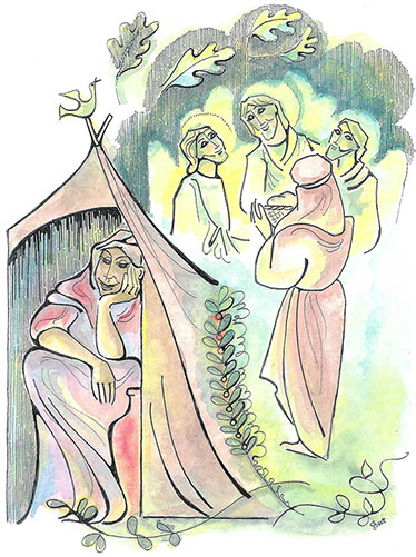 Sarah n’arrive pas à ce point crucial de son cheminement en vertu d’un « travail sur elle-même ». L’affirmation par Dieu de son vrai nom résonne plutôt comme un appel. Une nouvelle possibilité d’être s’ouvre pour elle parce que Quelqu’un l’a vraiment reconnue pour qui elle est. Et cela change tout. Dès lors que Dieu dit « Sarah », il l’associe à la fécondité, à la maternité, au fils qui naîtra bientôt. Et Sarah, qui rit comme d’une bonne blague de l’annonce de sa maternité par trois mystérieux visiteurs (18,12-14), est conduite à voir l’humour de Dieu sous un nouveau jour et à entrer dans la louange lorsque naît enfin Isaac (21,1-7)